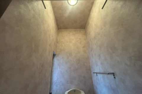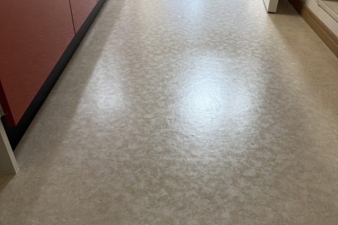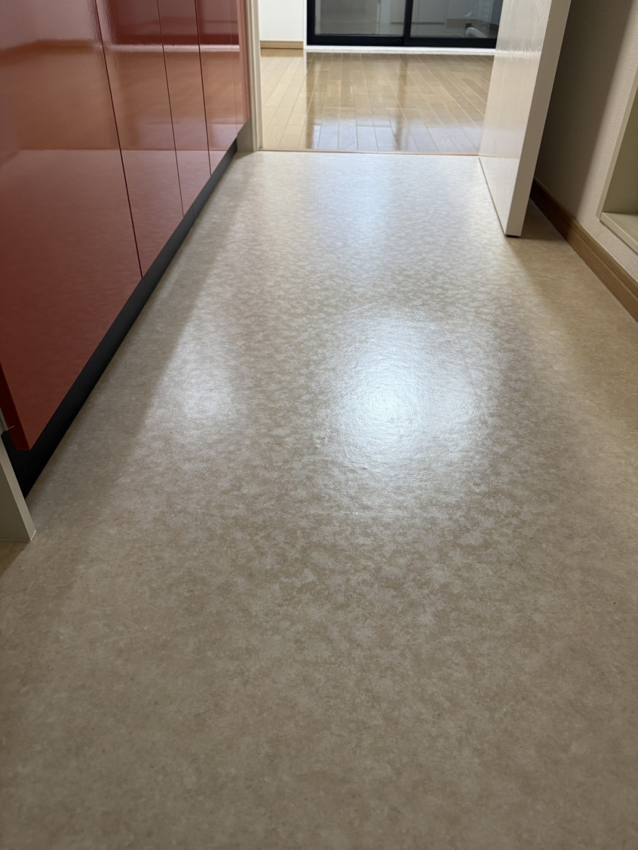 キッチンの床とお手洗いの壁面を新しい内装材に張り替える工事を行いました。
